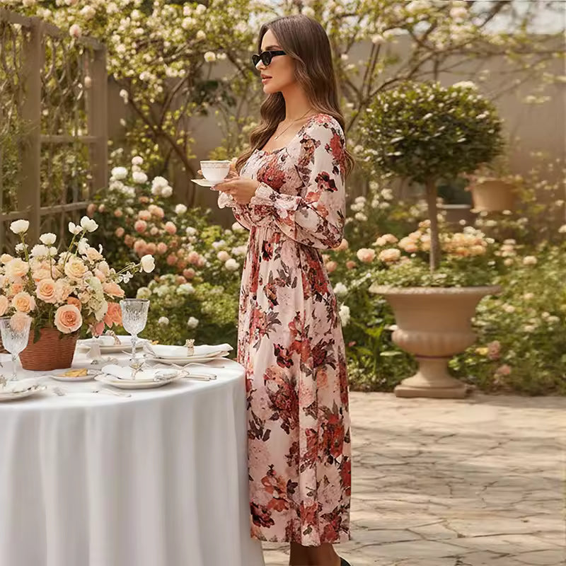 The delicate flower print adds warmth and character, making this dress perfect for autumn styling. The print remains subtle yet expressive, ideal for both casual elegance and special occasions.