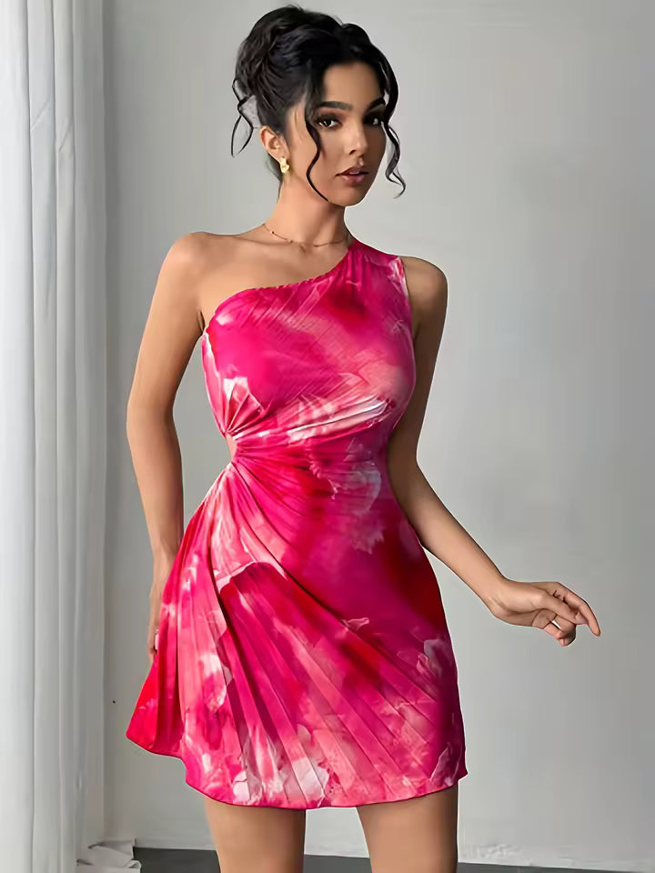 Structured pressed pleats flow naturally with movement, giving the dress a graceful drape and polished finish. The pleating adds dimension while keeping the look light and airy.